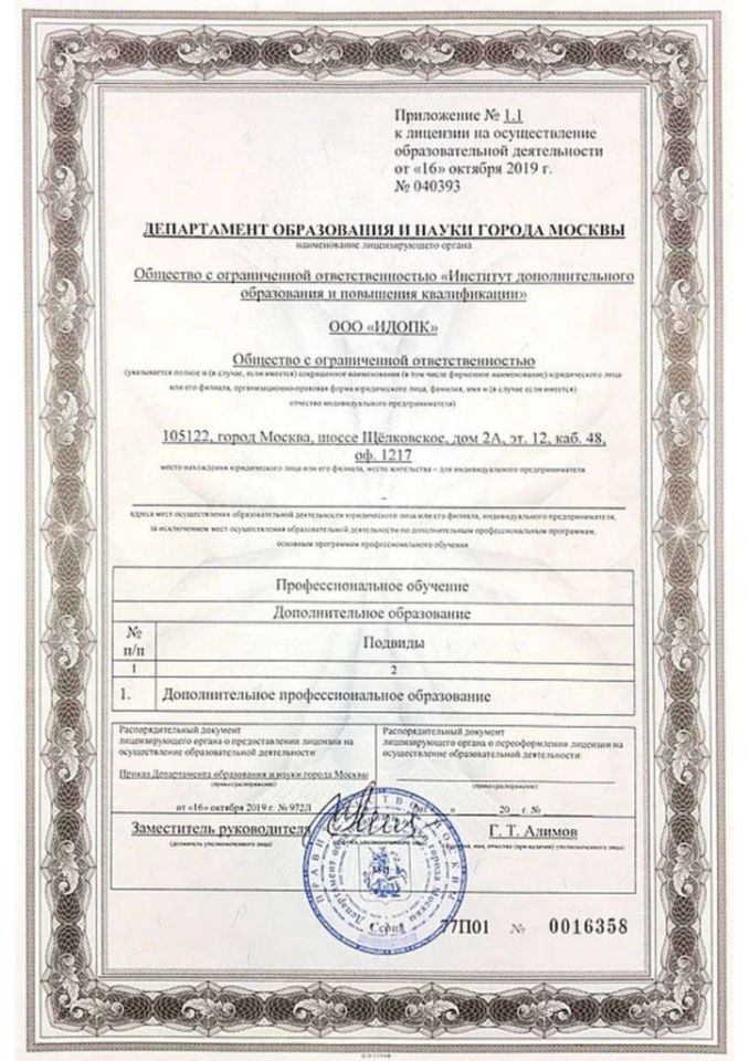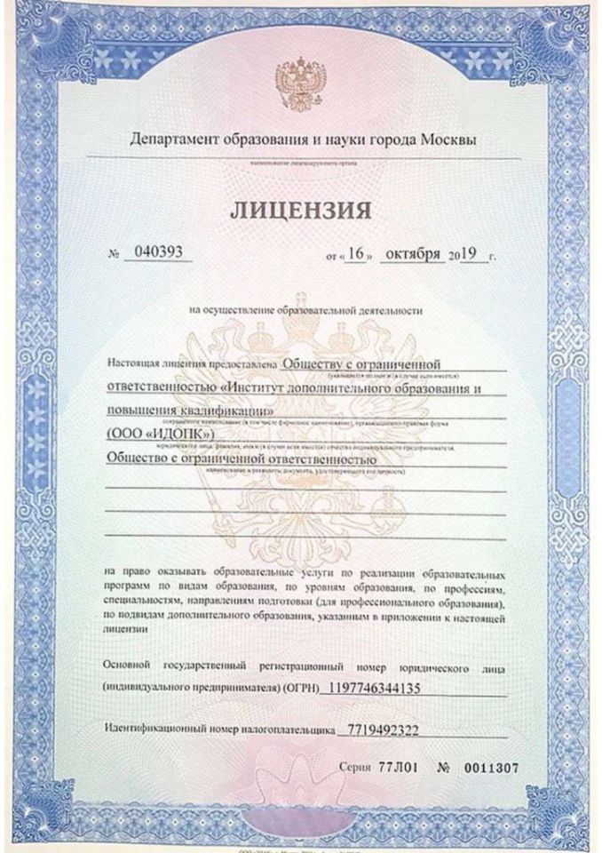 © 2025 Учебный центр ООО «ИДОПК». Образовательная лицензия № Л035-01298-77/00181386 от 14.02.2023 г